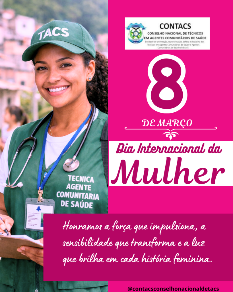 Neste Dia Internacional da Mulher, quero prestar uma justa e sincera homenagem a todas as mulheres, em especial às Técnicas Agentes Comunitárias de Saúde, que diariamente demonstram força, dedicação e compromisso com o cuidado à vida e com a promoção da saúde em nossas comunidades.