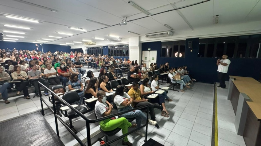 Profissionais aprofundam conhecimentos sobre programas, políticas e estratégias de cuidado A Secretaria Municipal de Saúde (SMS), por meio da Coordenação de Promoção e Educação em Saúde, em parceria com a Atenção Primária, realizou uma importante atividade formativa com os agentes comunitários de saúde no auditório da Unima, no bairro Cruz das Almas. A iniciativa teve